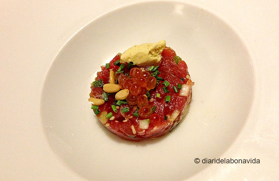 A part d’aquesta anècdota, de seguida vam remirar-nos la carta dels dos menús, triant finalment el Gastronòmic i la veritat és que no ens va decebre gens. El preu d’aquest menú és de 65 euros per persona (abril 2013) i 50 euros si triem el menú Degustació. Si fem l’opció del maridatge de vins, hem de sumar 25 euros més. El menú consisteix en uns aperitius, quatre entrants, dos segons i tres postres. Els plats no són gaire grans, però després de sumar tot el que ens vam cruspir, sortim amb les panxes plenes.