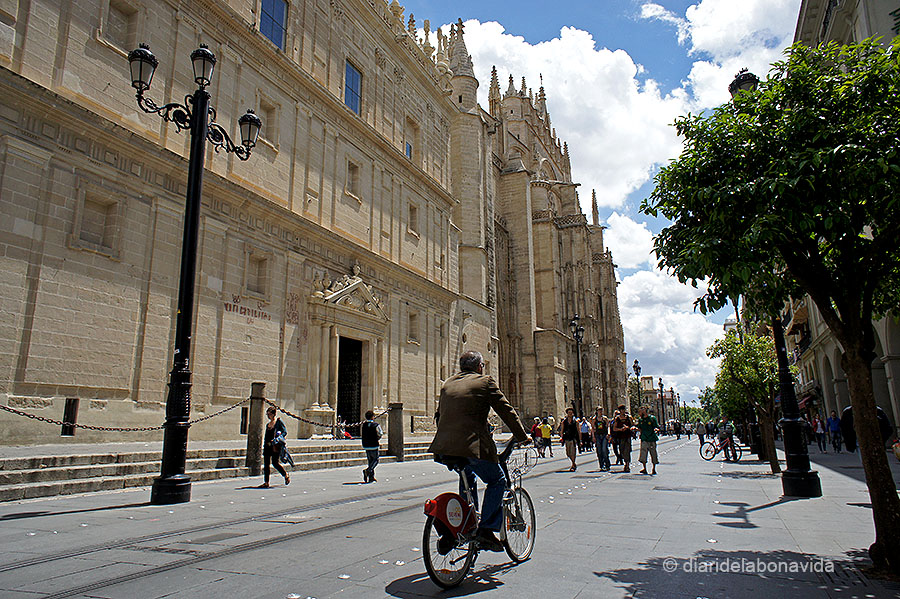 La situació de la Catedral, a l’Avinguda Constitución i en ple centre històric de Sevilla, segur que és un factor determinant pels més de 1.300.000 persones que la visiten cada any. El seu exterior impressiona, i fins i tot, si estem de visita a la ciutat durant els mesos d’estiu, la recomanem per evitar la calor. A l’interior s’està ben fresquet!!!