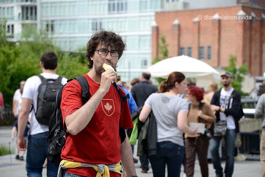 Ah! I una bona idea, per fer un parèntesis durant el recorregut del parc, és baixar al carrer a l’alçada de 15th i 16th Street i entrar al fantàstic Chelsea Market (veure post). Allà podem voltar entre moltes parades, fer un dinar i agafar forces per tornar a High Line i continuar amb el passeig
