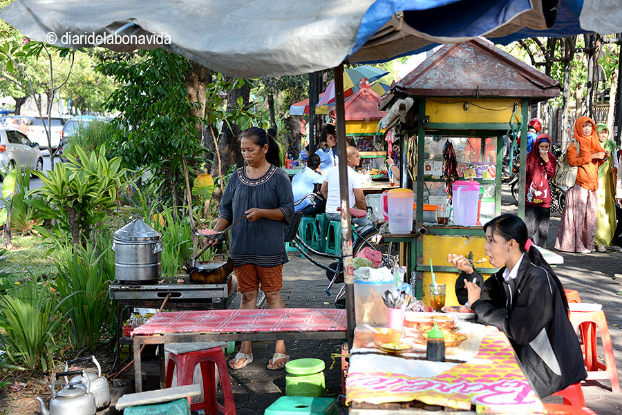 Hem perdut bona part del matí, però fins i tot trobem la part positiva. L’hospital era a l’altra punta de la ciutat, i els trajectes d’anada i tornada ens han servit per veure un munt de barris i vida increíbles. Marxem de la ciutat de Solo, pregant perquè la contractura no vagi a més. Encara som a l’inici del viatge!!! Volem viatjar a la seguent ciutat, Semarang, però tenim dubtes de com arribar. Per sort ahir mateix vam llegir un article d’un blog viatger on explicaven com ho havien fet. Gràcies bloguers del món!! Un autobus petit fa el trajecte de 3 hores. Déu meu com condueixen aquests indonesis. Avançaments per l’esquerra, per la dreta, motos per tot arreu… Més val no pensar. Finalment arribem a Semarang, situada al centre-nord de l’illa de Java, una gran ciutat de gairebé 2 milions d’habitants, però no ens queda més que la tarda per fer una volteta i quedar-nos amb una petita impressió.