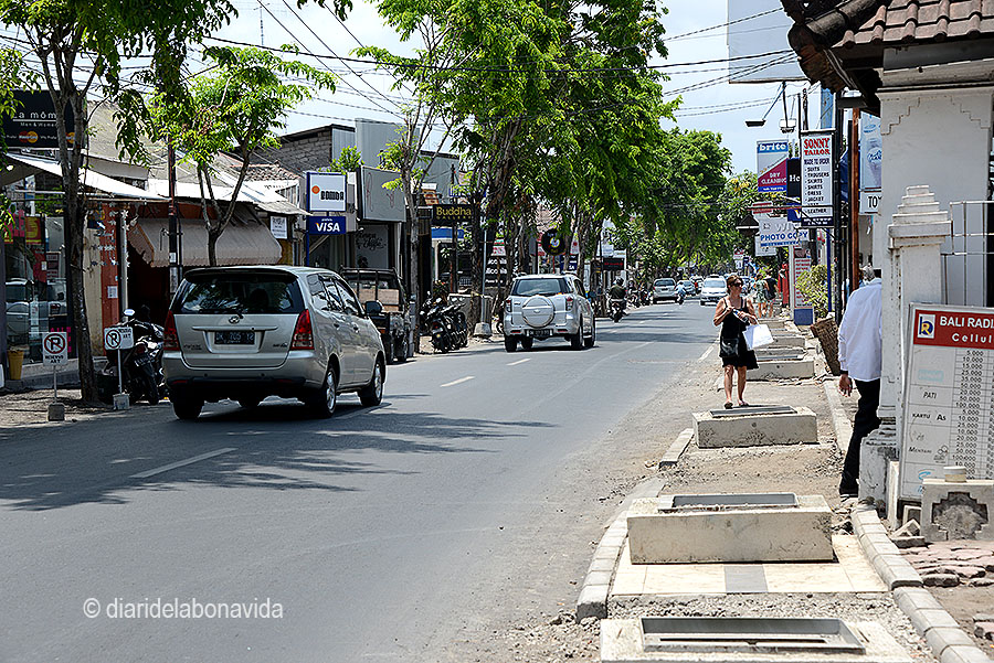 I és que el xoc de l’arribada ha sigut molt gran. En els 5 primers minuts ja vam veure tants turistes junts com en tots els dies que hem passat a Java! Una gentada recorre el carrer principal, ple de restaurants de tot tipus, botigues de roba i galeries d’art. Això sí, els carrers continuen amb unes voreres horribles, plenes de forats i trampes pels vianants, tot i que moltes estan en obres i en procés d’arreglar-se. Hotels, villes, spas… un al costat de l’altre.