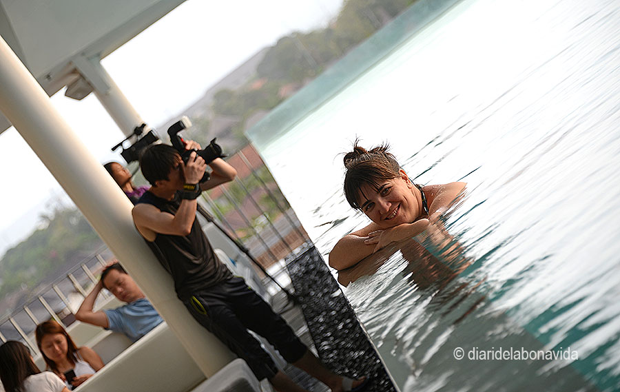 Els japonesos gravant i fotografiant mentre nadem a la piscina