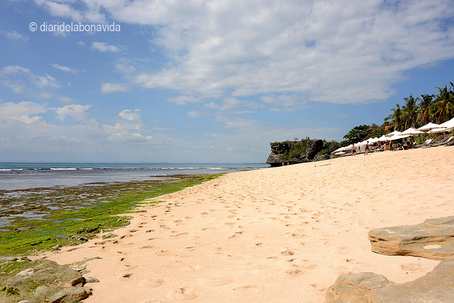 Trepitgem platges com les de Jimbaran i Balangan. Quina tranquil.litat. Dinem en un dels múltiples xiringuitos que hi ha davant el mar. Senzills, però fan el nostre plat preferit molt bo, el nasi goreng. Caminem per la sorra, parem a fer un beure, seiem a la sorra, tornem a demanar un beure… Quina calor, mare meva!