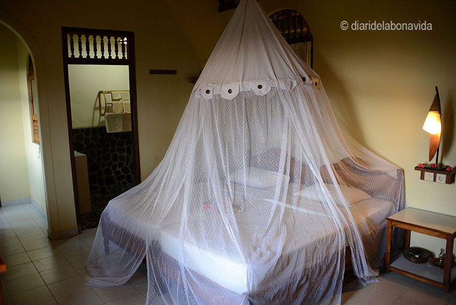 I per si no en tenim prou de camps d’arròs, decidim dormir en unes cabanes situades al mig dels arrossars. Que maques!! La idea ens sembla fantàstica, encara que no comtem amb la visita de força insectes durant la nit. És el que té fer nit entre l’arròs. Sort de les mosquiteres. Ah! I tampoc ens oblidem dels geckos, una mena de petit llangardaix. La feinada que tenim per fer sortir un de darrera el llit…