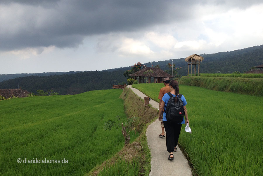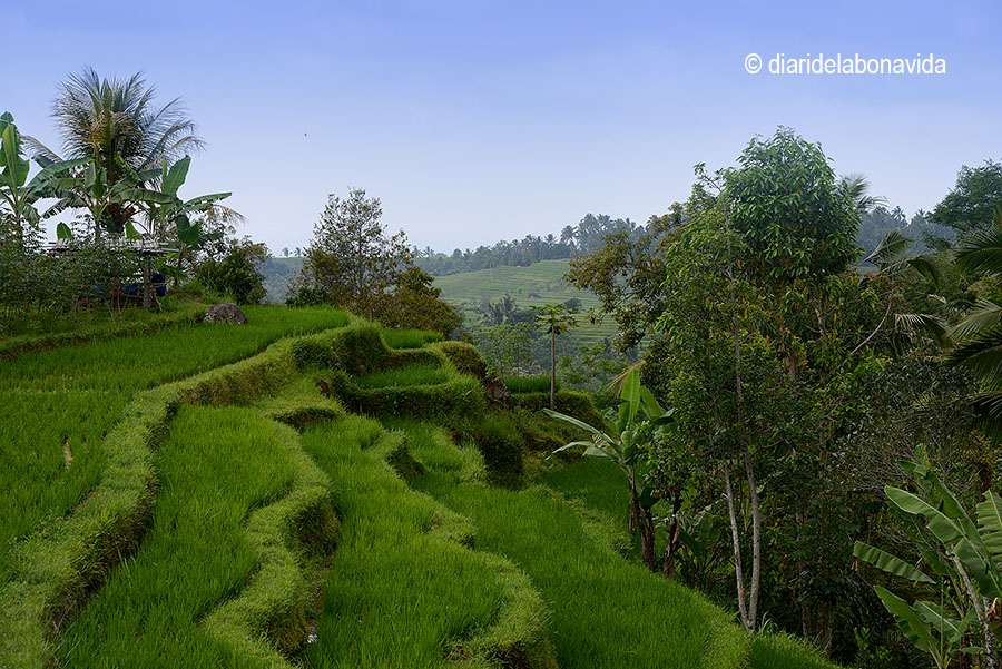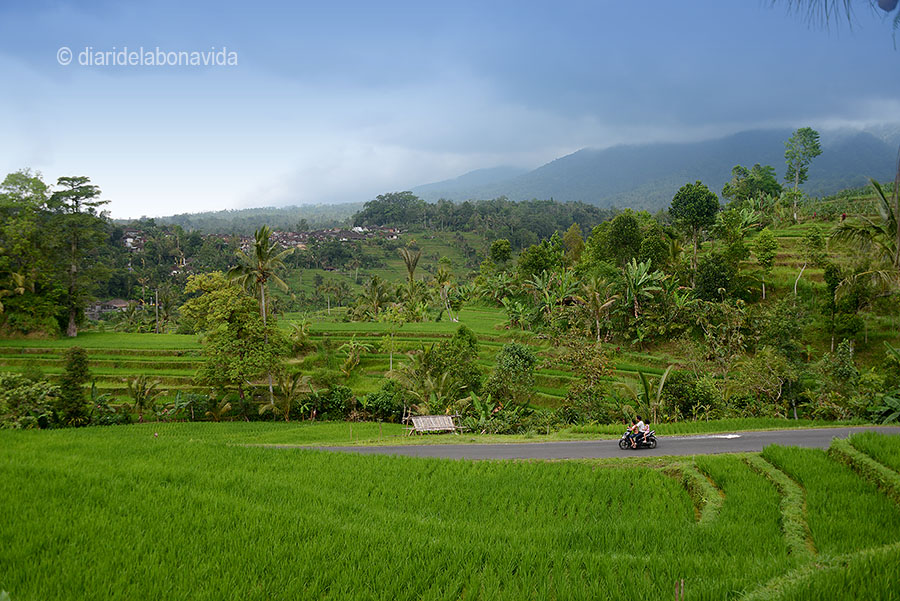 No ens cansem de veure camps d’arròs. Així que el tercer dia de ruta decidim arribar fins a Jatiluwih, uns bancals de cultiu reconeguts per la Unesco per la seva bellesa. De fet el seu nom literalment significa ‟realment meravellós”, i això és el que a nosaltres ens sembla. Tot i que ens costa força trobar-ho, finalment arribem a una petita guixeta on cobren una entrada per accedir-hi a un tram de carreterera des d’on es poden veure. Es pot circular per uns pocs quilòmetres envoltats de camps, però el millor és aparcar i fer algun passeig entre l’arròs.