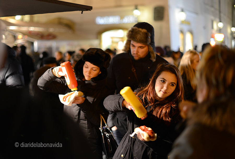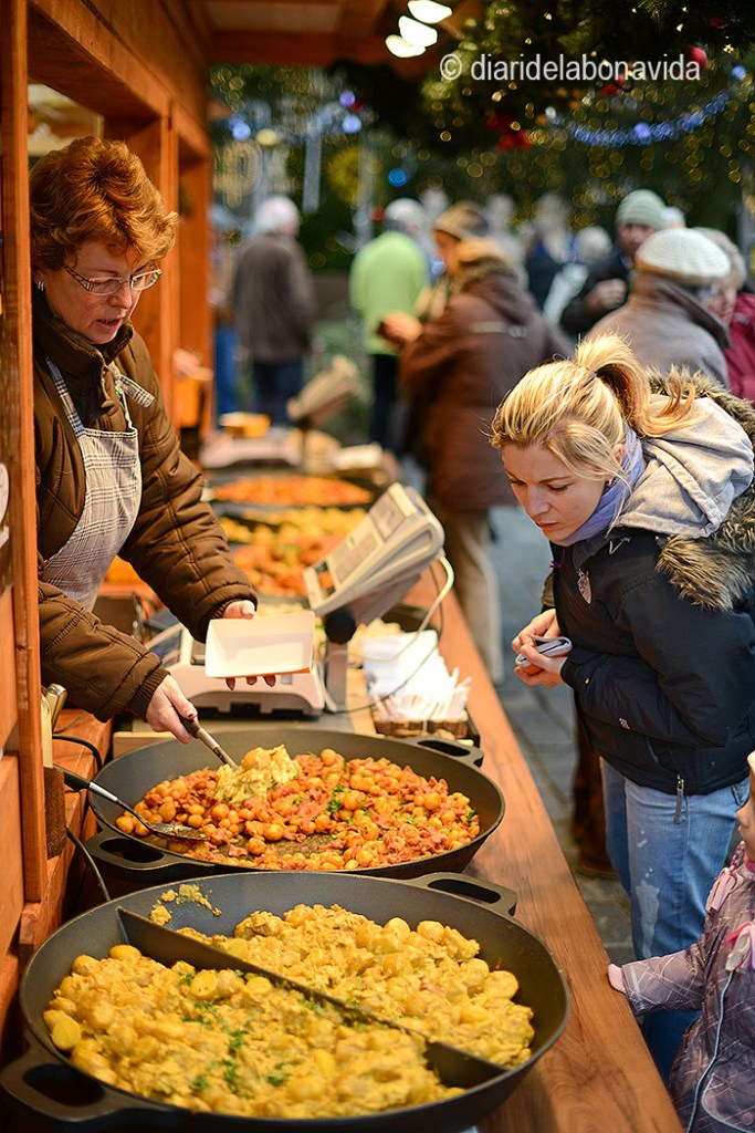 L’altre factor que ens encanta dels Mercats Nadalencs és el gastronòmic. Trobem un munt de paradetes que ofereixen plats de tot tipus. Si el fred no ho impedeix, és perfecte degustar tot el que volguem mentre passegem amunt i avall.