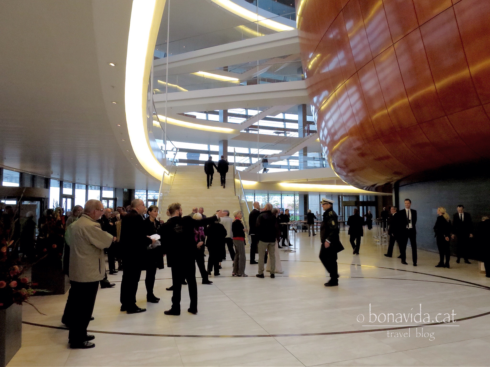 Ens ho confirma una de les persones que ens atura quan intentem accedir a l’interior de l’imponent edifici -“Avui no és possible visitar l’Òpera, disculpin les molesties“- ens diu. -“Ooooh! I com és?” – exclamem. Ens explica que es conmemora el 400 aniversari de l’Armada Danesa, i fan un acte oficial.