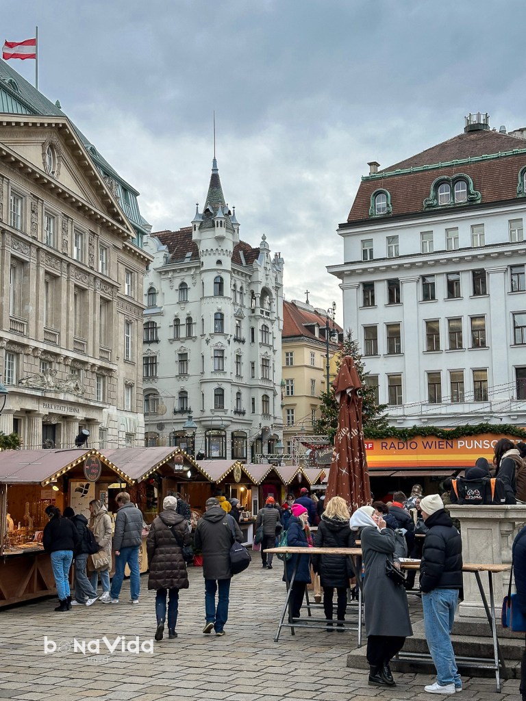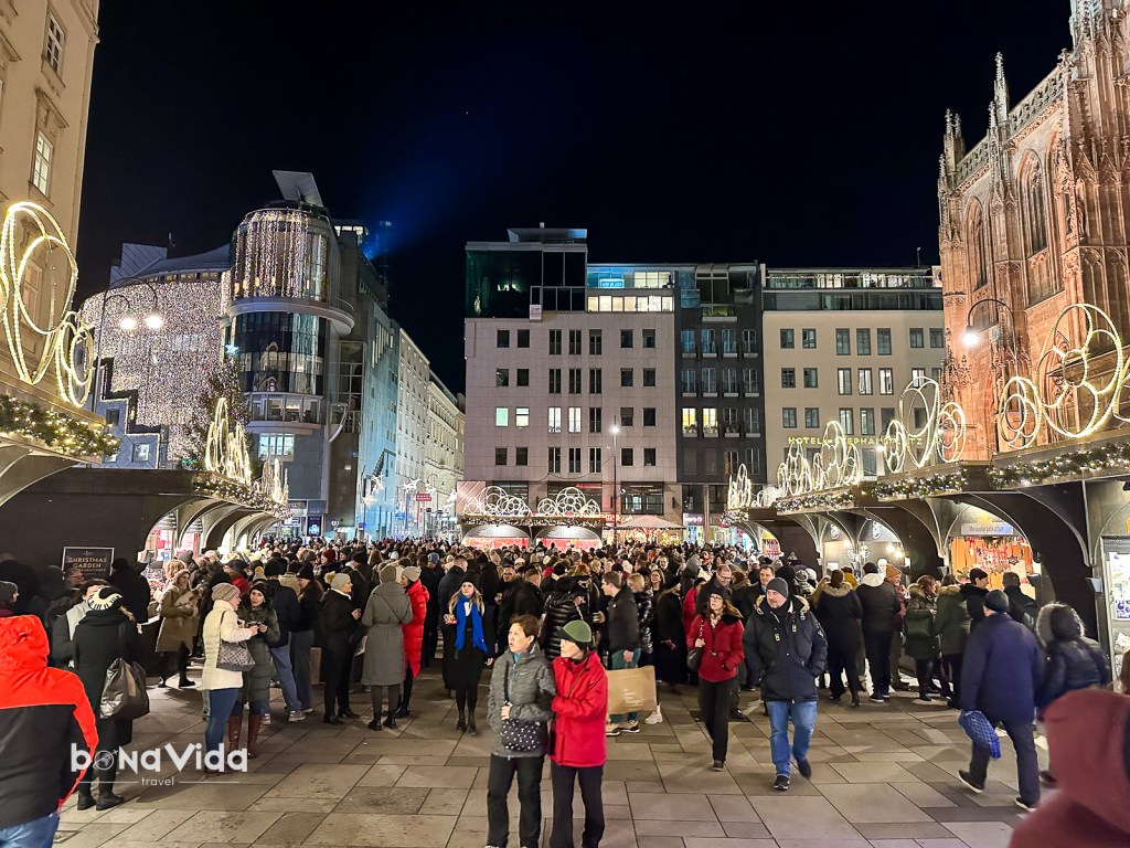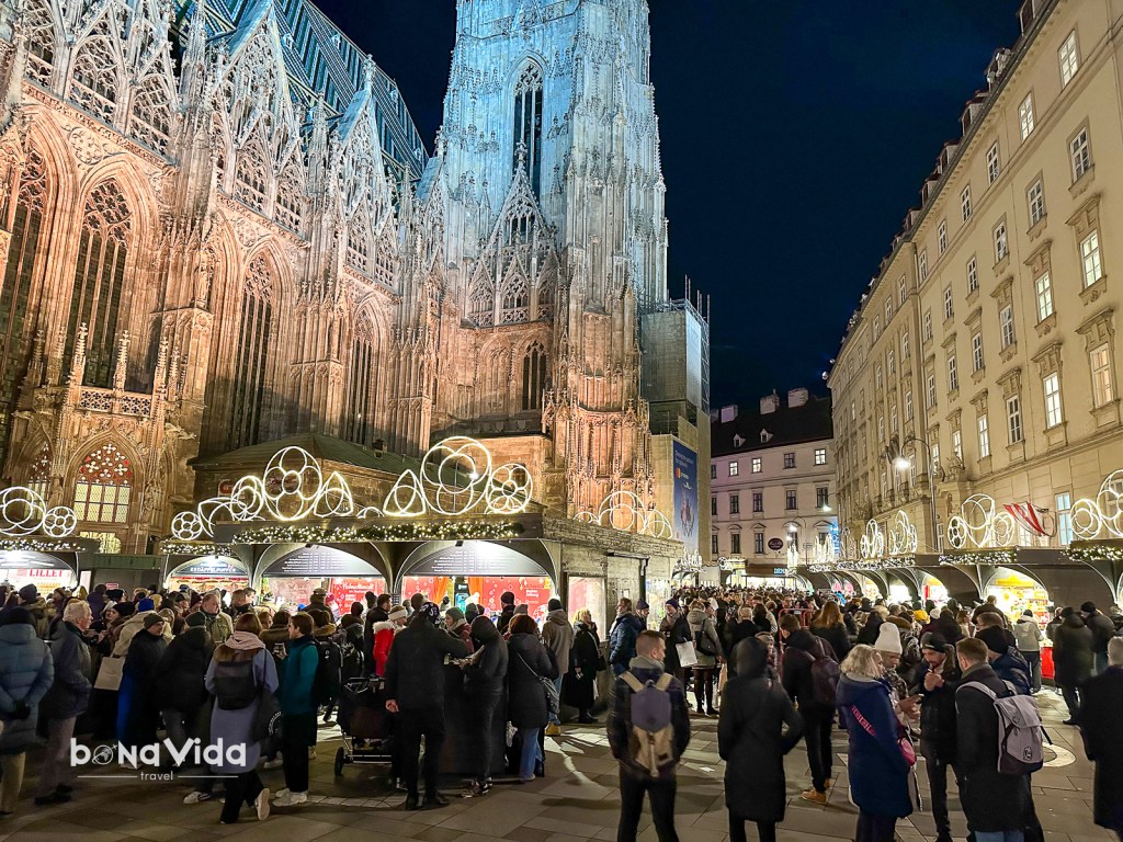 Sota l’impressionant Catedral de Sant Stephan (i al voltant de la plaça del mateix nom), trobem aquestes sempre atapeïdes parades de Nadal. Souvenirs, regals, vi calent, menjar… L’enorme campanar ens fa sentir petits mentre voltem pel Mercat. Estar situat en ple centre de la ciutat, el fa molt visitat.
