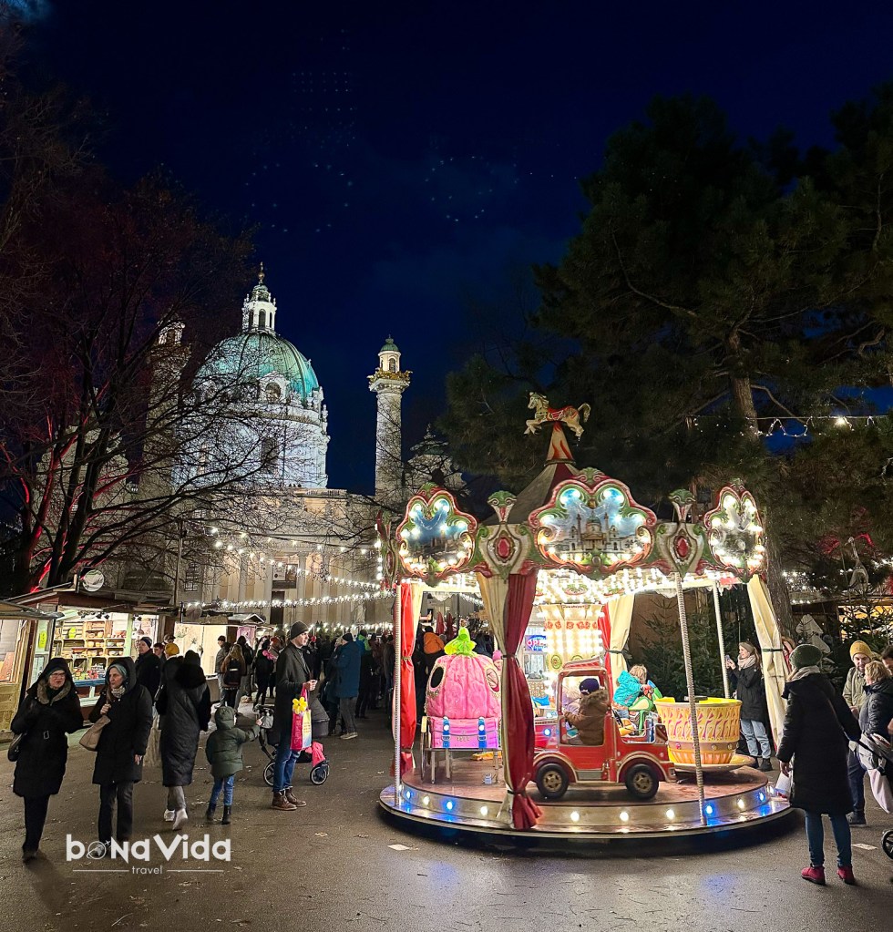 Un Mercat nadalenc ben curiós, ja que es troba dins les instal·lacions del Parc Prater, un enorme parc d’atraccions que fa les delícies de grans i petits.