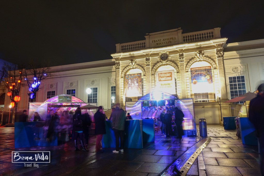 Zona d’oci pels joves, els anomenats Pavellons de Gel, adquireixen el seu esplendor a la nit, quan els DJ’s punxen la seva música. No és pròpiament un Mercat de Nadal, però és un bon lloc on degustar totes les varietats de Punsch, un licor molt típic que se serveix calent. Situats a la zona de Museums Quartier, epicentre de la cultura de Viena.