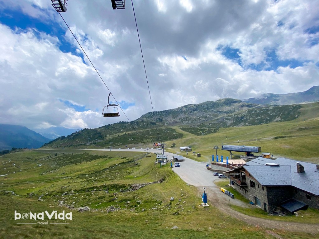 Allà podrem comprar els tiquets per prendre el telecabina (preu 14€ anada i tornada) i pujar, en uns 7 minuts, fins a La Coma (2.229 m) on hi ha un restaurant i lavabos.