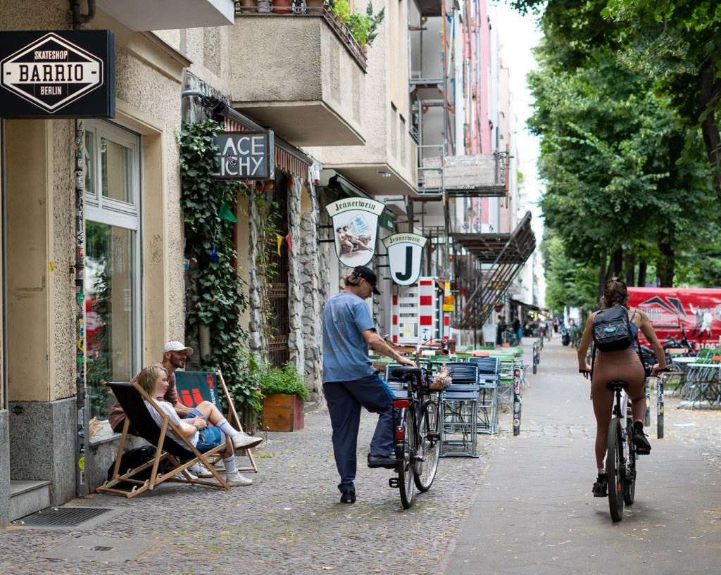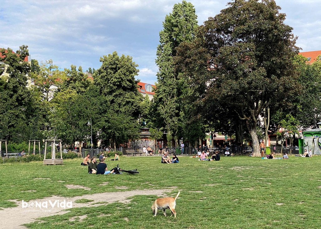 • Barri de Friedrichshain. Conegut com a F’hain, é sun dels barris de moda, i aquí es mesclen des d’un ambient familiar, a obrer i treballador, alternatiu i fiestero. El Volkspark Friedrichshain és el parc més gran de la zona, Boxhagener Platz és una de les places més conegudes i Simon-Dach-Straße és un animat carrer ple de bars i restaurants que s’omple de vida.