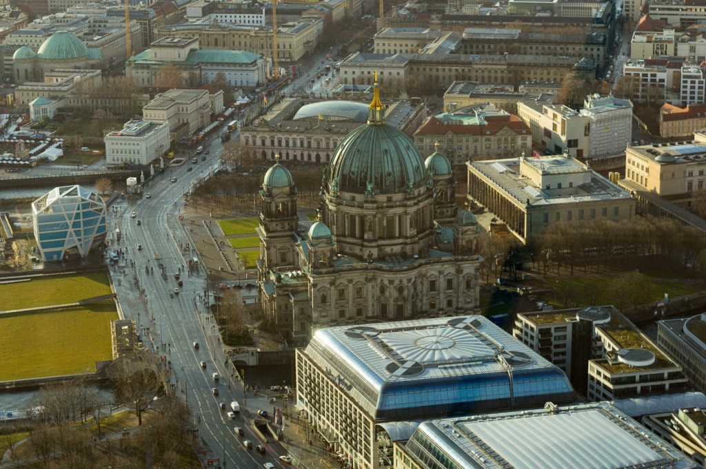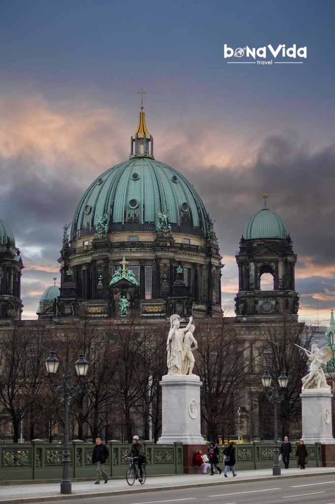 • Catedral. Majestuosa, i situada davant del sempre animat parc de Lustgarten, la Catedral destaca per la seva enorme i verdosa cúpula flanquejada per 4 torres. Va aconseguir ressistir als bombardejos de la Guerra, però la façana segueix mostrant els moltíssims impactes de projectils que va rebre.