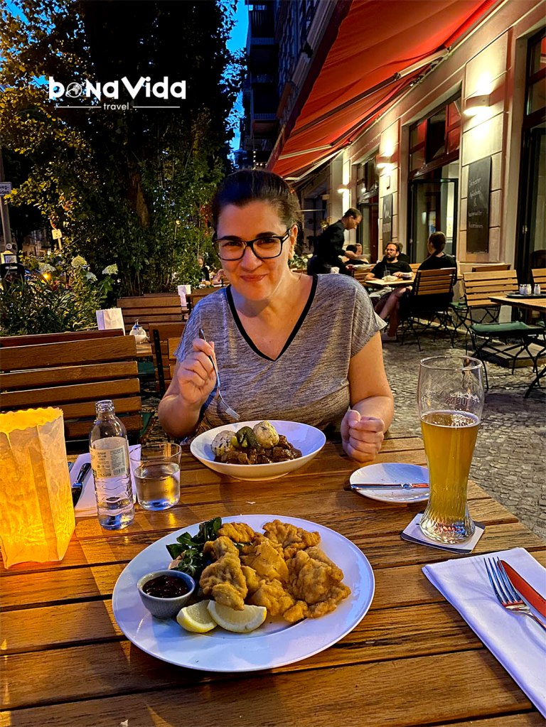• Gastronomia berlinesa. Els restaurants de Berlín són una còpia de l’essència d’aquesta ciutat: cosmopolita. Podem trobar de tot tipus, i amb les diverses visites a aquesta ciutat hem pogut veure com l’oferta vegetariana i vegana ha anat creixent (a nosaltres ens encanta visitar els vietnamites 😝). Alguns dels plats més típics de la dieta alemanya i que hem de tastar és el Currywurst (salxitxa cuita o rostida, normalment tallada i acompanyada de salsa de tomàquet i curri). La carn triomfa entre els plats, sobretot el porc, i en canvi, costa trobar un bon peix fresc.