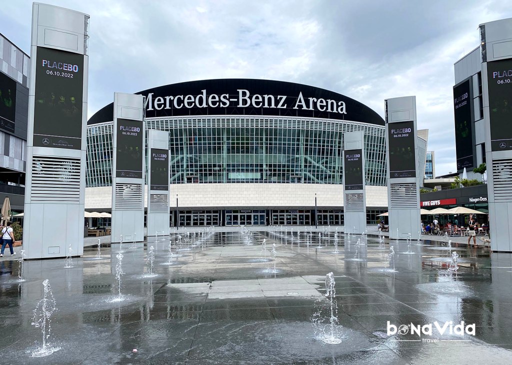 • Mercedes Platz acull un gran centre comercial i zona d’esbarjo, cinemes, restaurants, i el gran pavelló Mercedes-Benz Arena, us espai multifuncional que pot acollir exposicions però que també és la seu de l’equip de basquet de l’Alba Berlín.