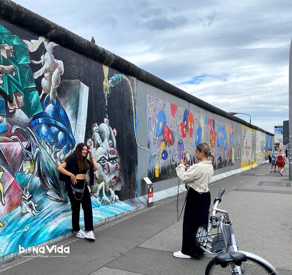 • Mur de Berlín. Construit després de la II Guerra Mundial, en plena guerra freda, dividia la ciutat, literalment, entre la zona oriental i occidental. Durant 28 anys va separar familiars i amics a una banda i una altra, i moltes persones van arriscar la seva vida per creuar aquest mur de 4 metres d’alçada. El 1989 el van enderrocar, i avui podem trobar diferents trossos d’aquest mur repartits per la ciutat. Un dels millors llocs on veure’l és a la East Side Gallery. Allà, més de 100 artistes van pintar i decorar blocs del mur amb murals i grafittis de tot tipus.