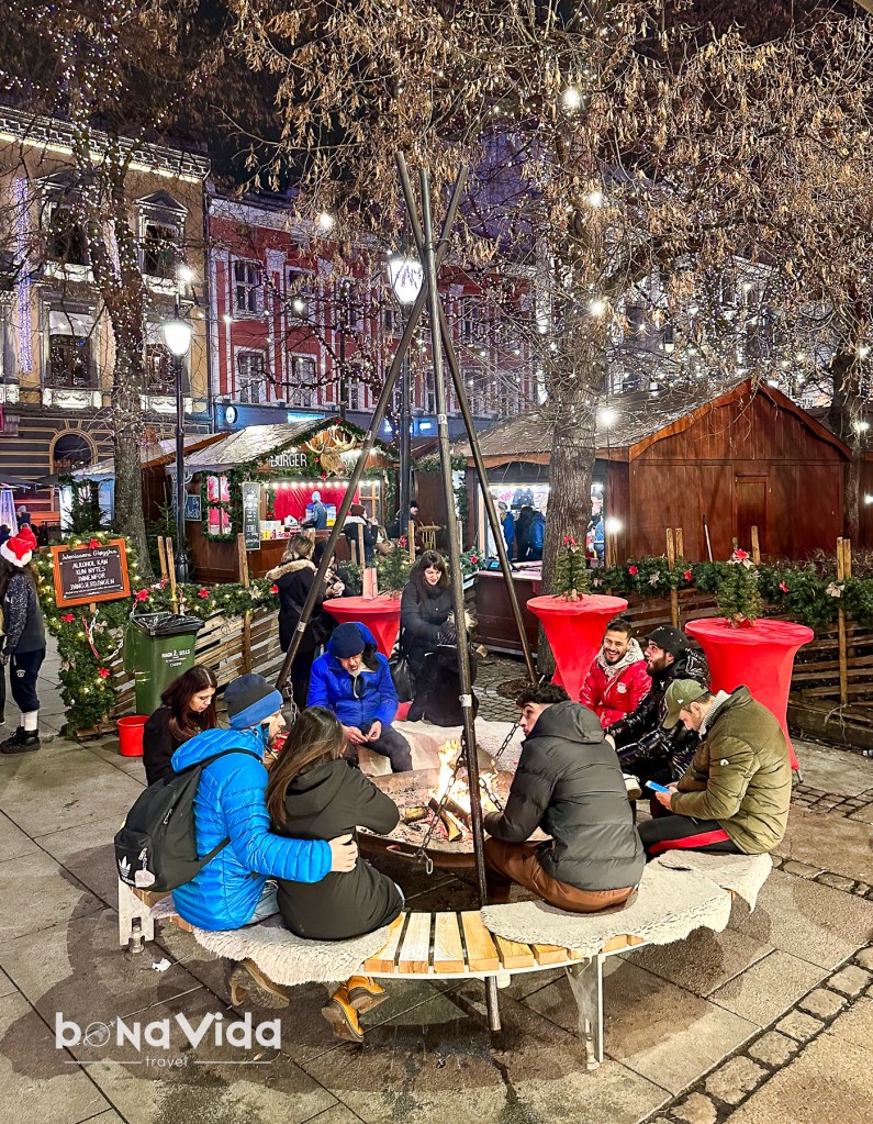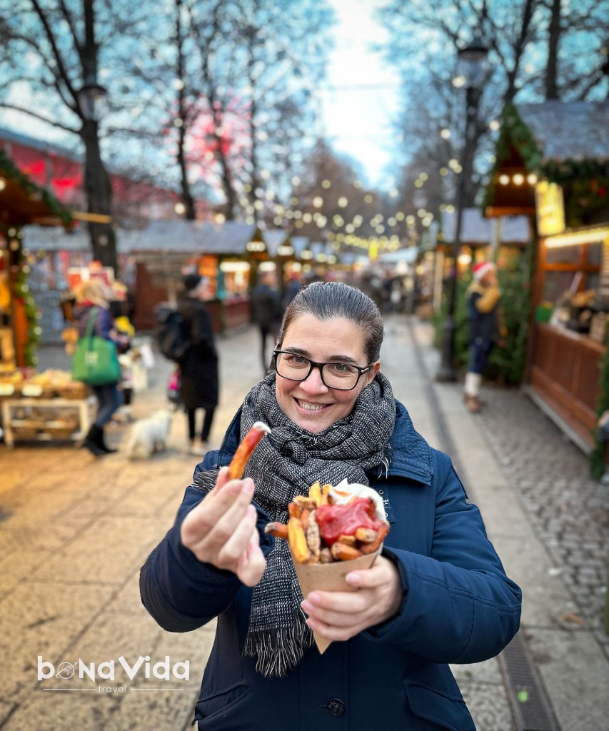 I com sempre, a tots els Mercats de Nadal, no ens cansem d’aconsellar tastar totes les delícies que podem trobar en ells. I aquí no és una excepció. Res millor que anar menjant mentres voltem sota les moltes llums que decoren els arbres d’aquest lloc.