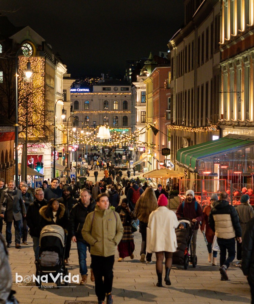 I és que la ciutat, Oslo, està ben maca en aquestes dates nadalenques. Els carrers principals, i les avingudes comercials bullen de gent fent compres i turistes com nosaltres passejant amunt i avall.
