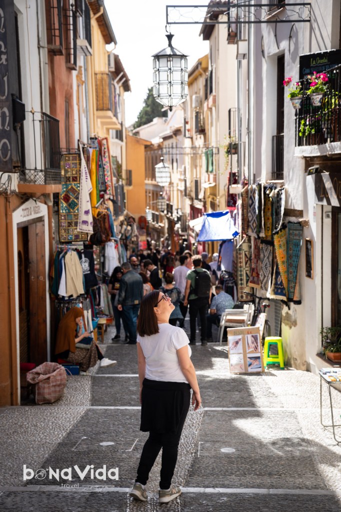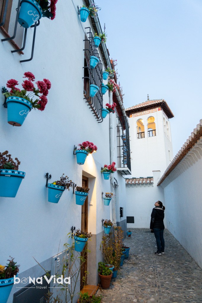 Una altre dels barris que més ens agraden és l’Albaicín. Declarat també Patrimoni de la Humanitat, té un encant especial, amb les típiques casetes amb jardí anomenades “Carmenes”. És un dels llocs més visitats, especialment un dels seus racons, el mirador de San Nicolás, on ningú vol perdre´s el capvespre amb vistes a l’Alhambra.
