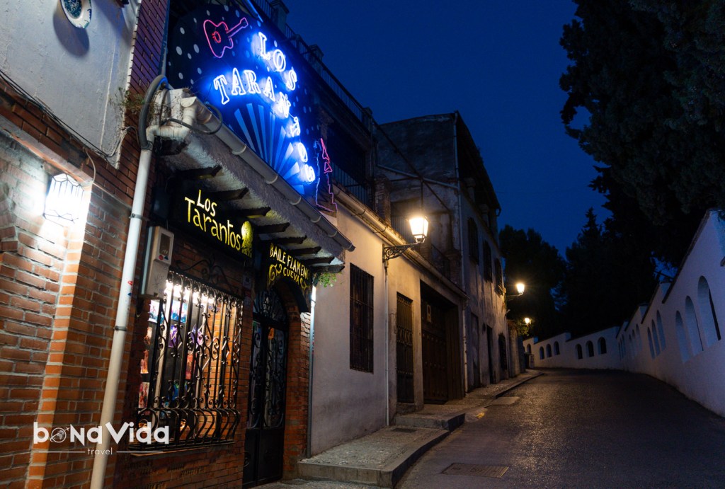 I encara us proposem un altre barri amb personalitat pròpia i molt popular. Es tracta de Sacromonte, situat a les afores del nucli urbà, moltes vivendes van ser construides literalment en coves, fora de tot control urbanístic. Aquest lloc està considerat el bressol del flamenc, i podem gaudir d’algun dels diferents espectacles que es fan a les populars “zambras” (coves que es fan servir com a tablaos flamencs).