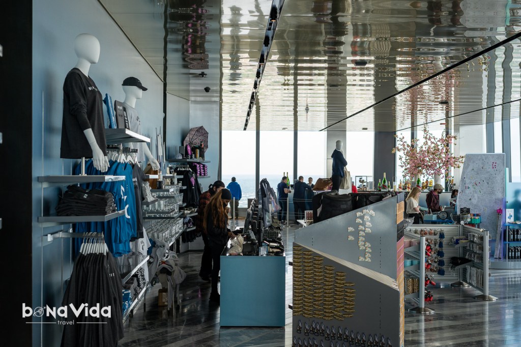 La combinació entre l’interior i la terrassa exterior és una de les més perfectes de tots els miradors. La sensació de ser al mirador a l’aire lliure més alt de tots és genial, i els vidres i terra fan que l’experiència sigui molt agradable.