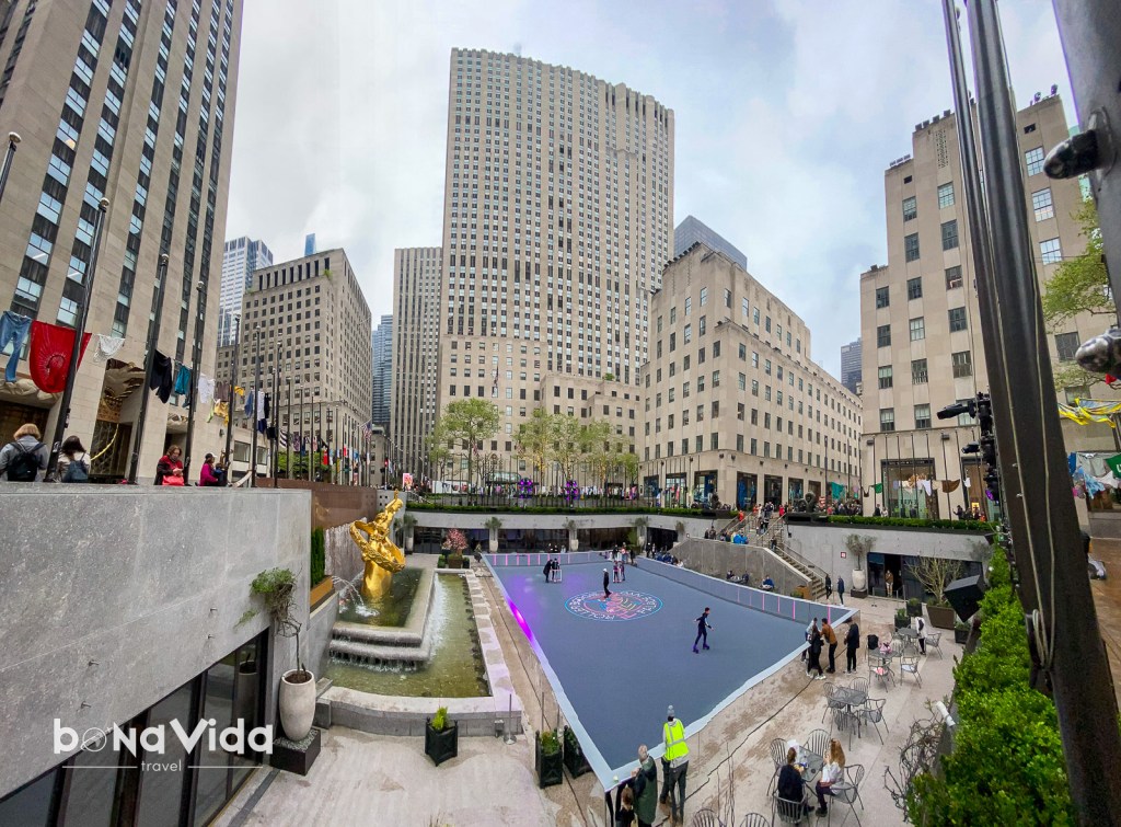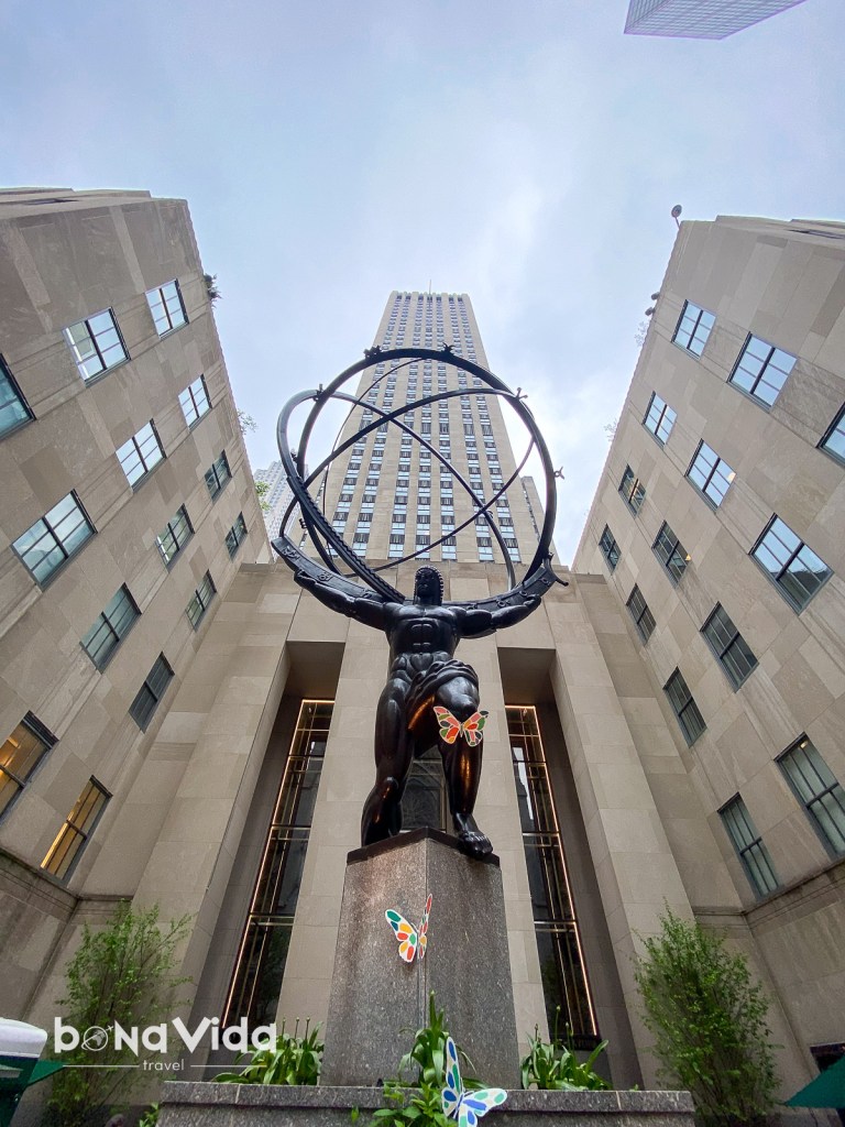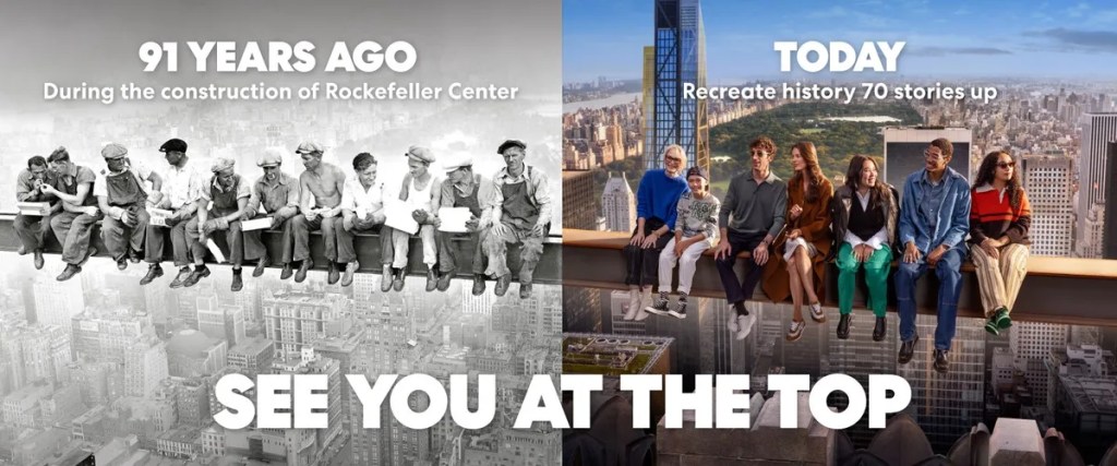 La icònica fotografia del 1932 que mostra 11 treballadors menjant en una biga d’acer, a 69 pisos d’alçada, es va fer aquí durant la construcció de l’edifici Rockefeller Plaza.