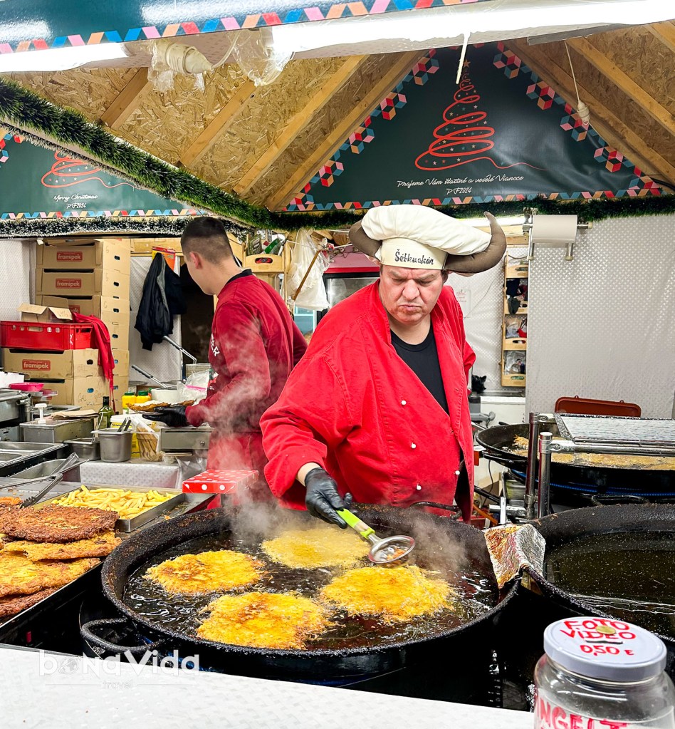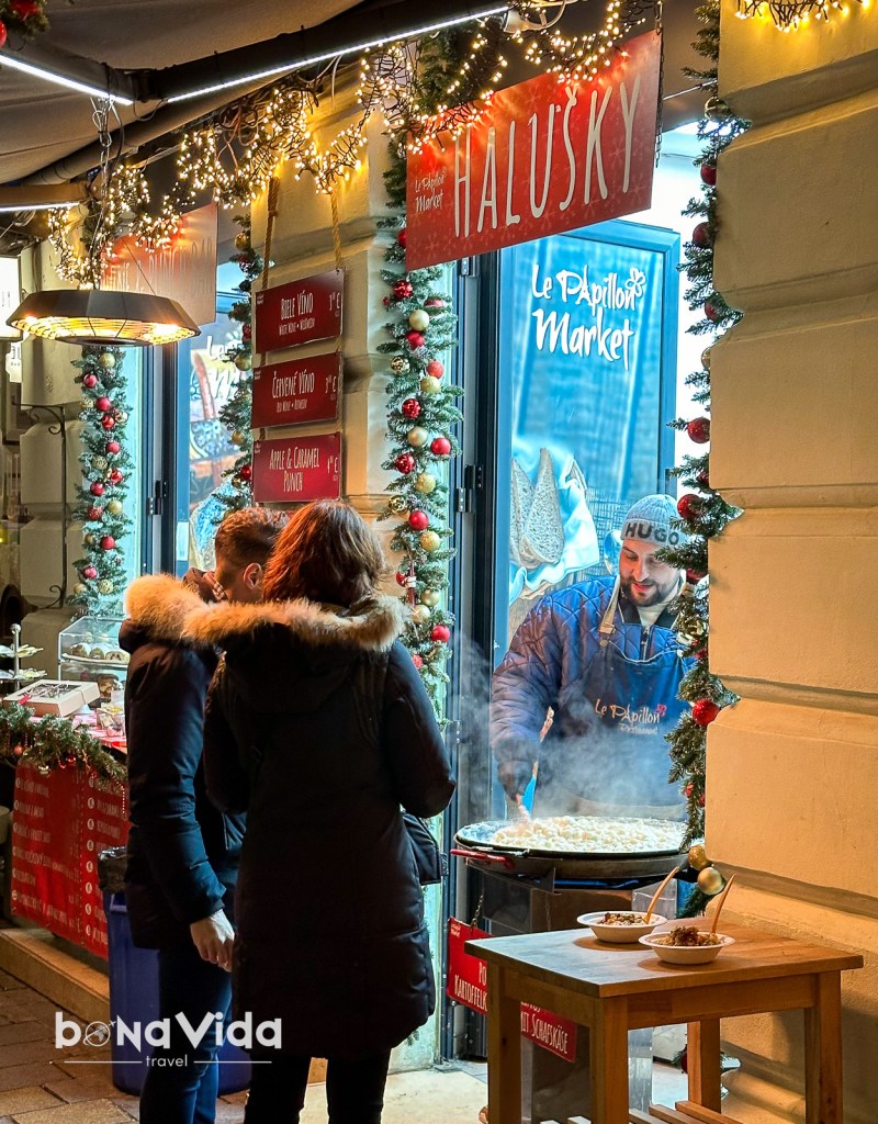 Totes les parades de menjar ofereixen especialitats d’hivern tradicionals eslovaques, com ara: