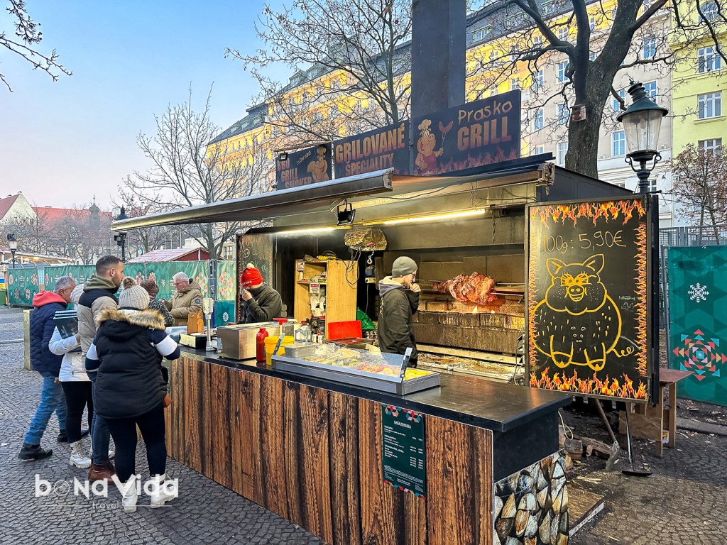 A les paradetes hi trobareu especialitats locals per tot tipus de paladars. L’elecció és àmplia: hi ha delícies salades i dolces. Proveu, per exemple, lokše, la carn d’oca, el rostit de gitano, creps de patates, strudel, vi calent, hidromiel, ponx…