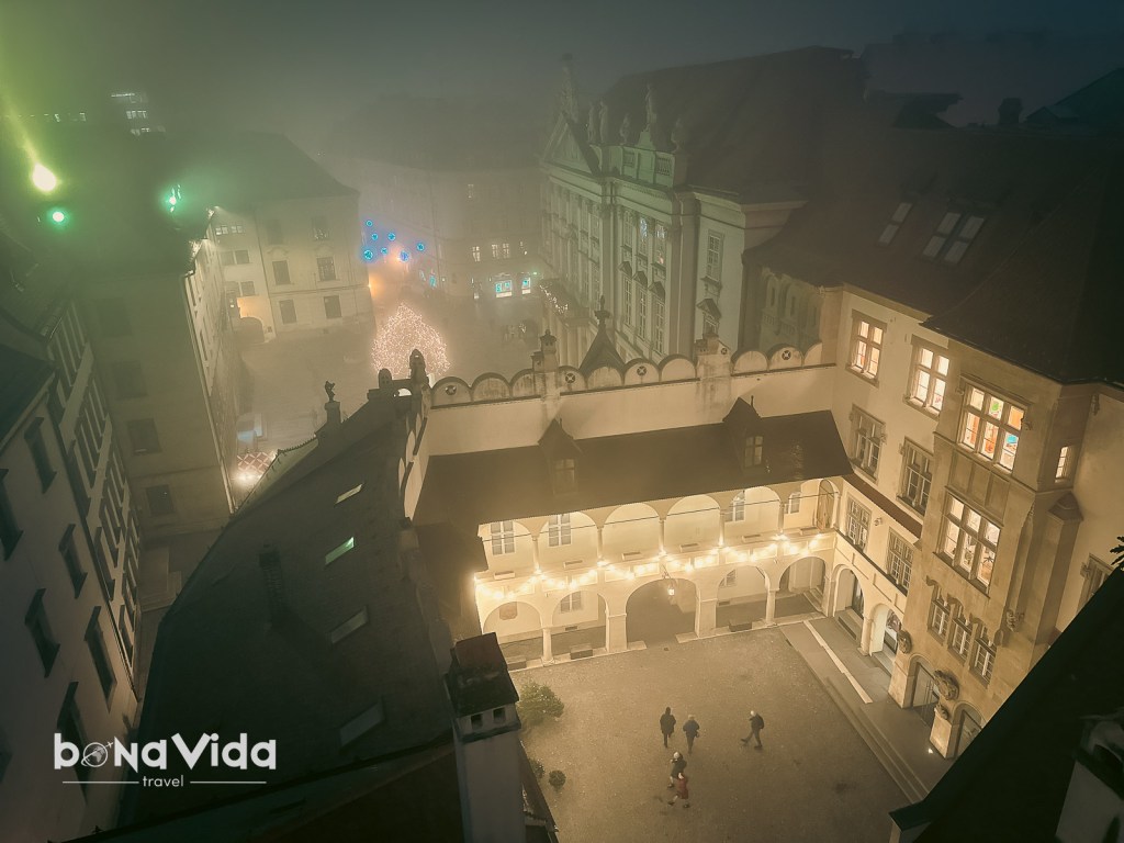 El casc antic és fantàstic, amb els seus carrers de llambordes i edificis antics. Ah! I no podem perdre’ns la visita al seu Castell. Situat dalt un turó, permet tenir unes bones vistes de la ciutat, tot i que a nosaltres la boira no ens deixava veure a més d’un metre davant els nostres ulls! 😅 Però això el feia semblar màgic!