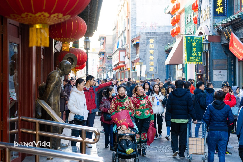 Situat a l’eix central de la ciutat de Pequín, el carrer Qianmen és un famós carrer de vianants per comprar i fer turisme. Al ser una zona peatonal on no passen cotxes, i plena de comerços i botigues, és un lloc on les famílies i els turistes acostumen a passejar amunt i avall.
