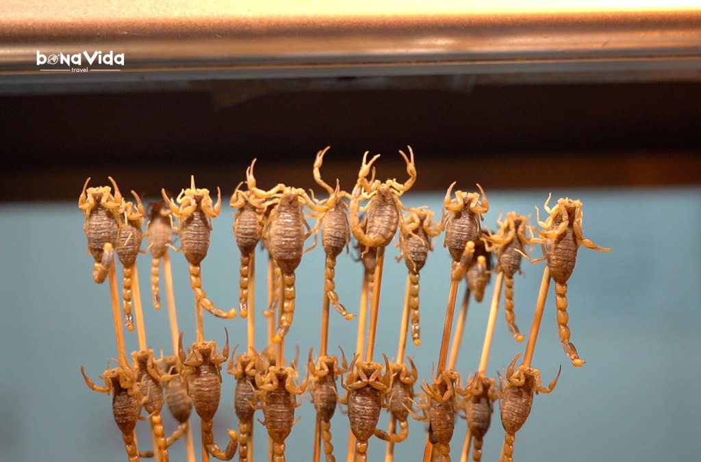 Sí, és molt turístic, però això no treu que sorprengui i entretingui a parts iguals. Situat a l’entrada nord del carrer Wangfujing, seguint l’aroma del menjar, es pot degustar cuina local en petits platets ideals per compartir i fer un tast. Voleu mossegar unes delicioses broquetes d’escorpí? O potser preferiu els cucs de seda bullits? Aquest és el vostre lloc! 😛