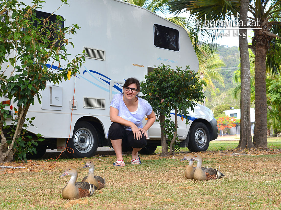 DIA 4. Arribem a la ciutat de Brisbane ben d’hora. Tornem a agafar un vol fins la ciutat de Cairns. Un cop arribem, anem en taxi fins l’empresa Around Australia Motorhome, on tenim reservada l’autocaravana. Comprem una mica de suministres al supermercat, fem una volta per la ciutat i decidim fer nit al camping Coconut Big 4.