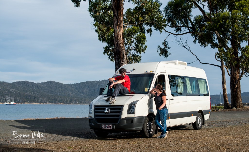 DIA 27. Tornem a l’aeroport per agafar el vol fins a Hobart, la capital de Tasmània. A l’arribar, prenem un taxi fins l’empresa de lloguer autocaravana (Cruisin Motorhomes). La recollim i ens dirigim a Port Arthur, on passem nit al càmping Port Arthur Holiday Park.