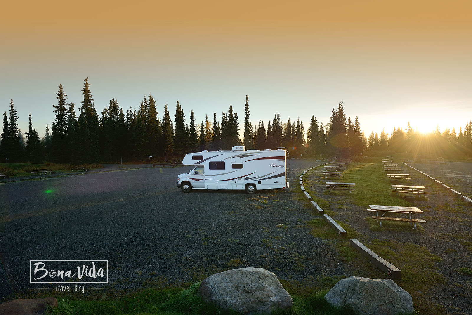 Al viatjar en autocaravana i portar la casa a sobre, el tam de l’allotjament està resolt, però és imprescindible triar bé les zones d’acampada. A Alaska es pot acampar gairebé en qualsevol lloc, seguint una certa lògica, és clar. Els llocs prohibits on fer-ho estan perfectament senyalitzats. Tot i així, nosaltres vam optar gairebé sempre pels diferents punts d’acampada que et vas trobant. Majoritàriament es poden dividir en 2 tipus diferents: